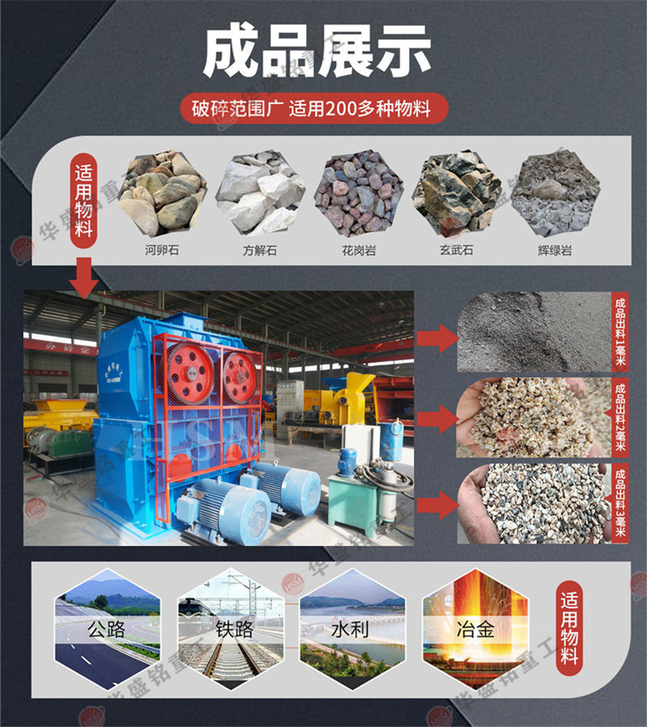 四輥破碎機物料進入上面兩輥V型破碎腔以后,受到上兩輥相對旋轉的擠壓力作用,將物料擠軋和嚙磨后再進入相對旋轉的中間兩輥,利用中間兩輥的擠壓力進行二次擠軋和細破后,然后進入下兩輥破碎成需要的粒度由輸送設備送出。